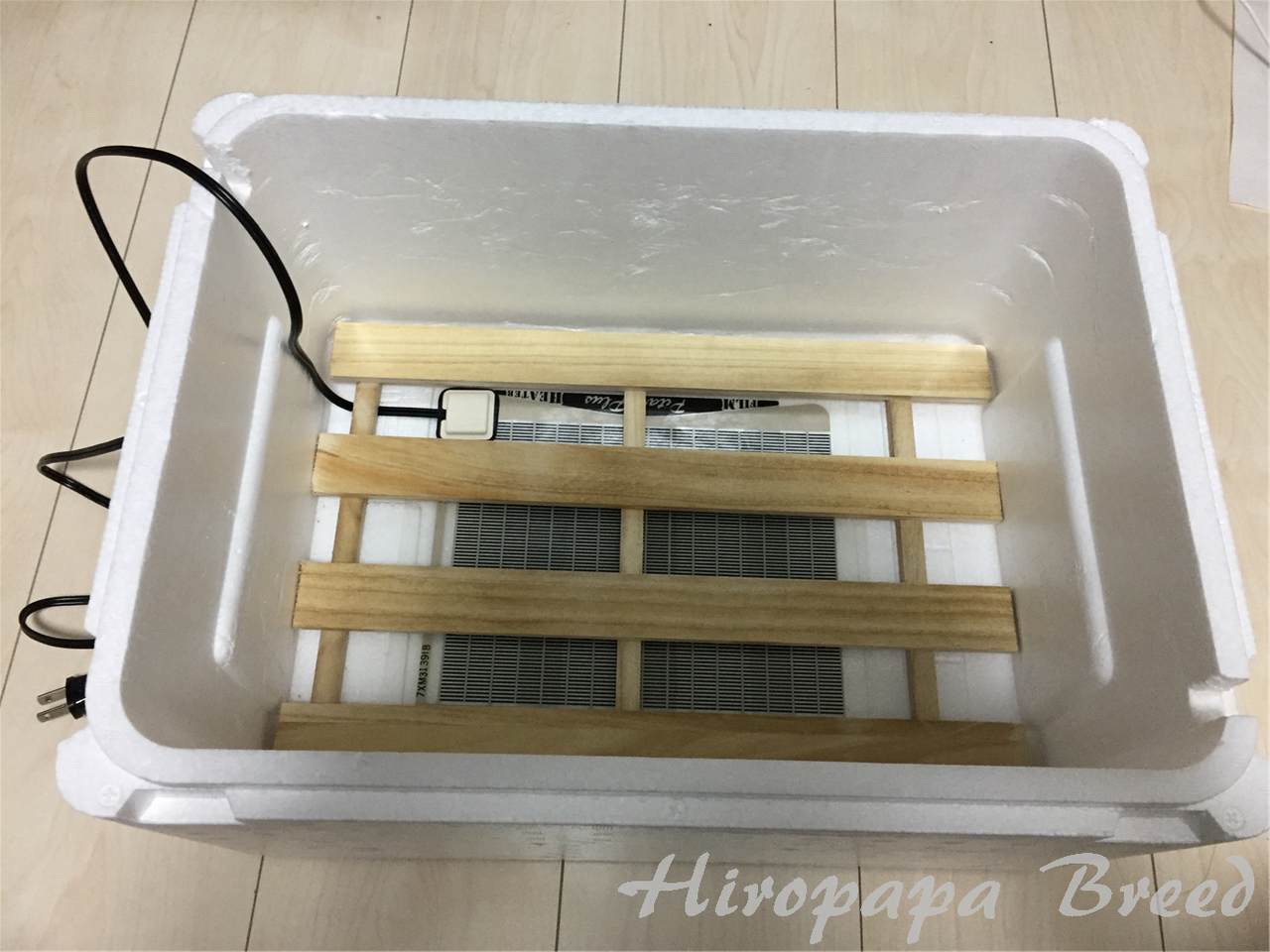 発砲箱にはパネルヒーター+サーモで管理。