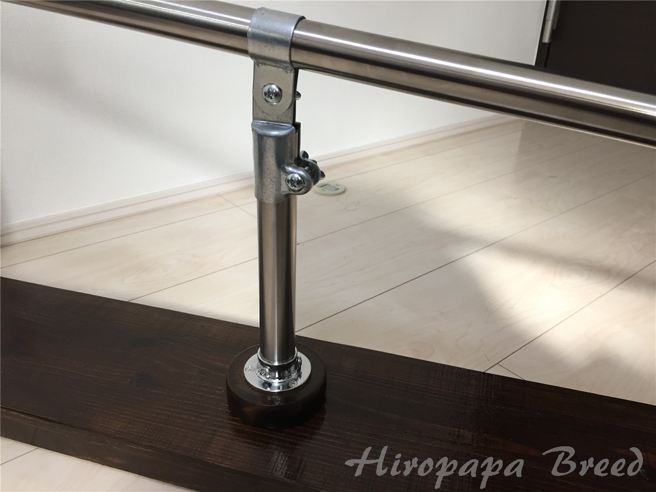 ステンレスに見えますが、こちらは鉄パイプにステンレスを巻き付けた安価な物。