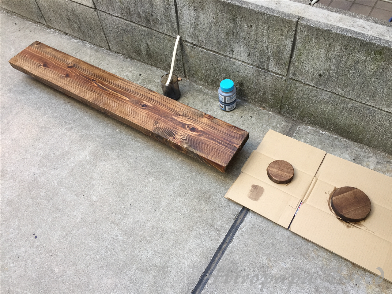 そして、ニスが乾いたところでプレス部木材をビス固定します。