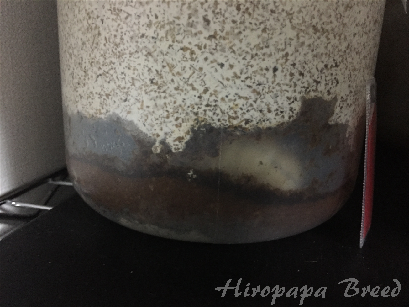 そして、蛹室をボトル底に作った場合はこの体液の逃げ場がなく蛹室に溜まってしまう。