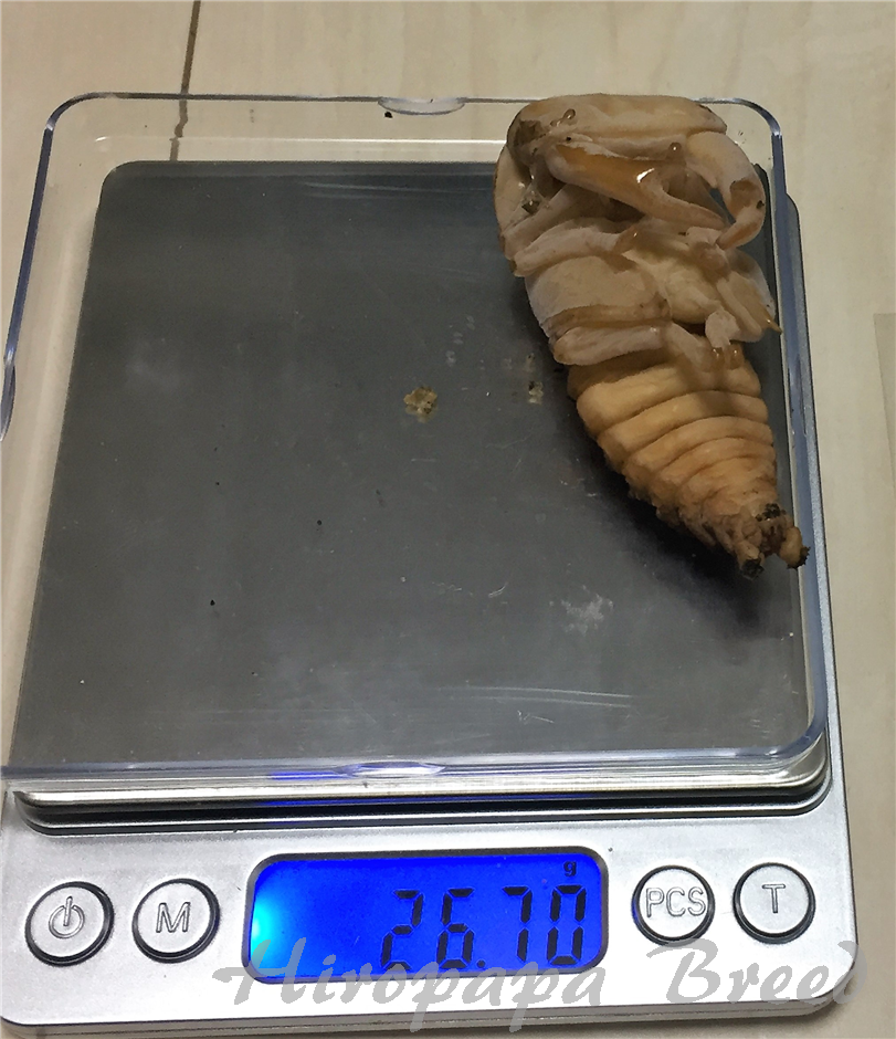 蛹体重を計ってみましたが、そこからどの程度のサイズが期待できるのかまだ勉強してませんでした(笑)