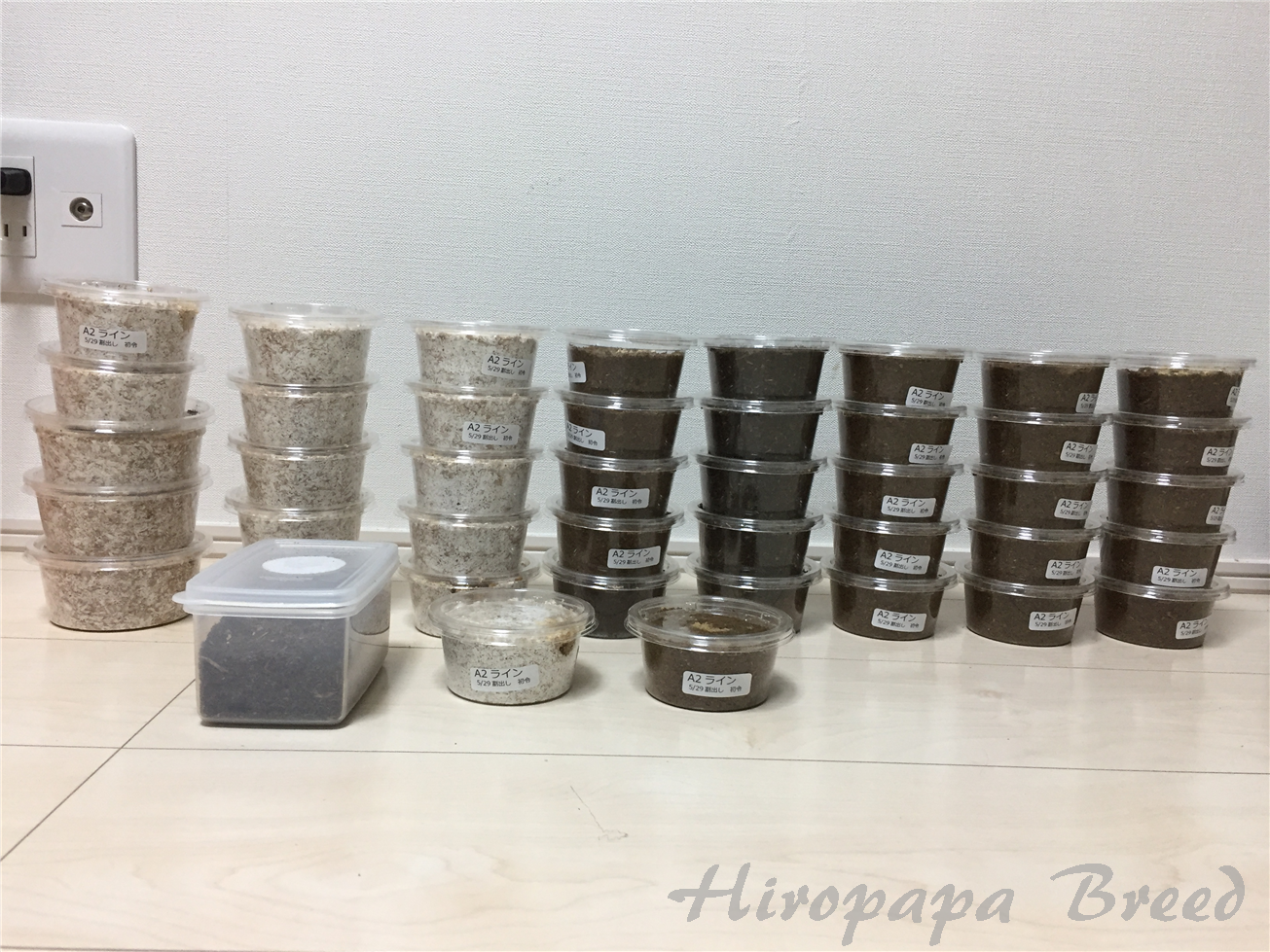 最後にはプリカも足らなくなり、イマイチまわりきっていない菌糸プリカにも突っ込み、それでも足りなくなり最後の最後はタッパーにマットを詰め込み投入しました。