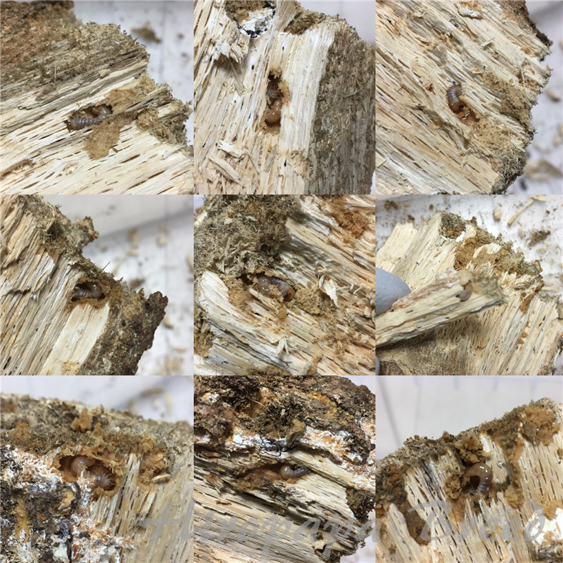 ニクウスバ材は表面をあまり齧られてなく、もしかしてクヌギ材ばかりに産んだかな?と。